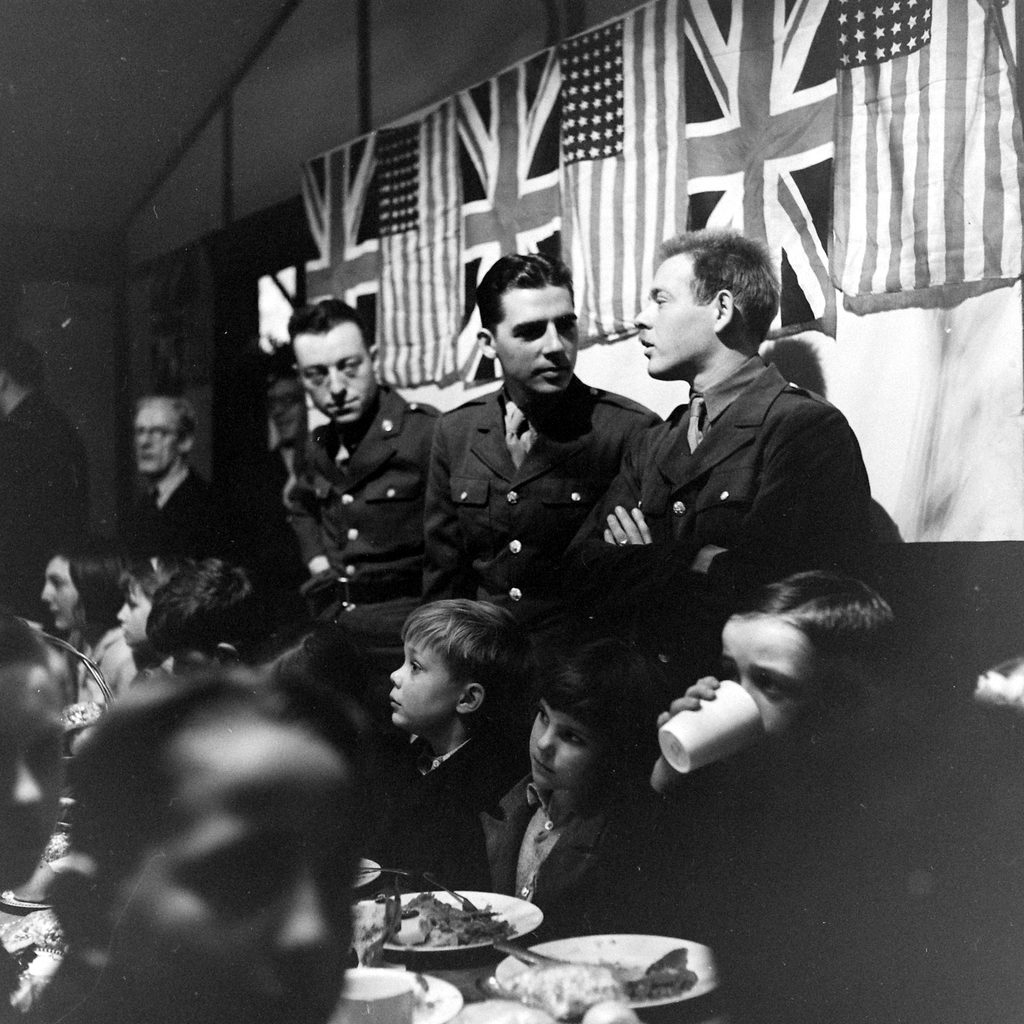 二战老照片 美国大兵和英国人一同庆祝感恩节