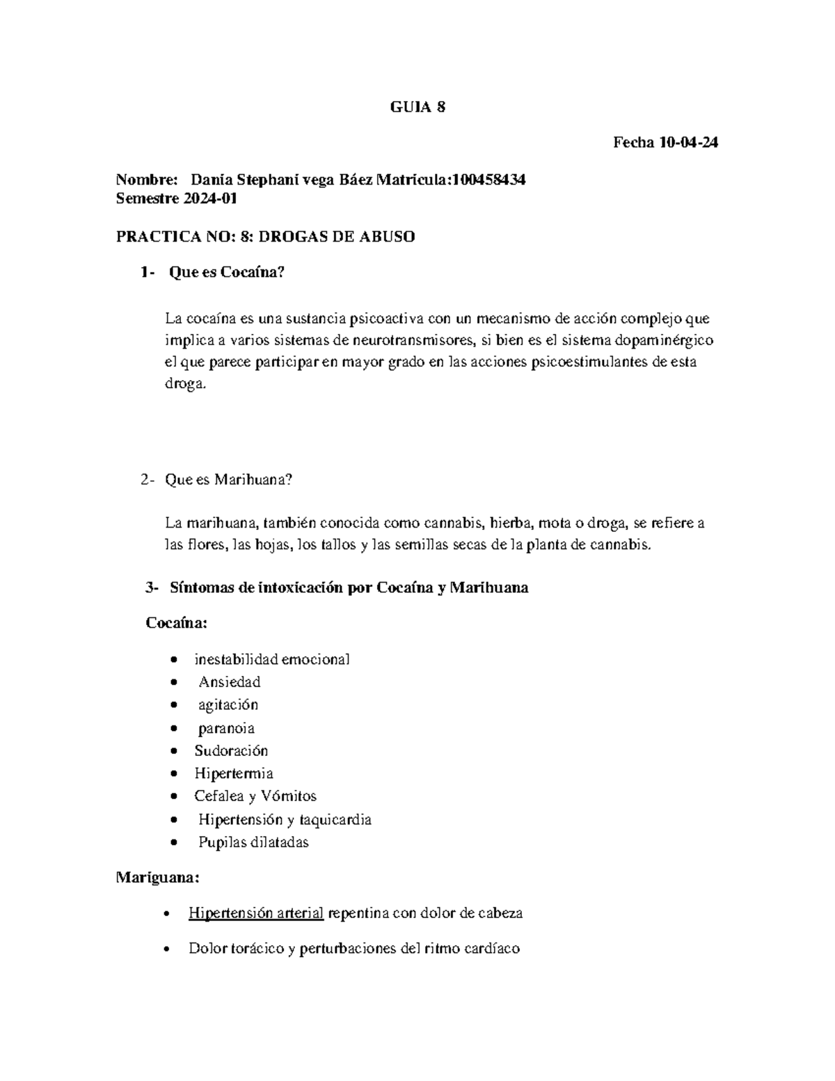 Guia 8 teoria - guia 8 del lab de toxicologia - GUIA 8 Fecha 10- 04
