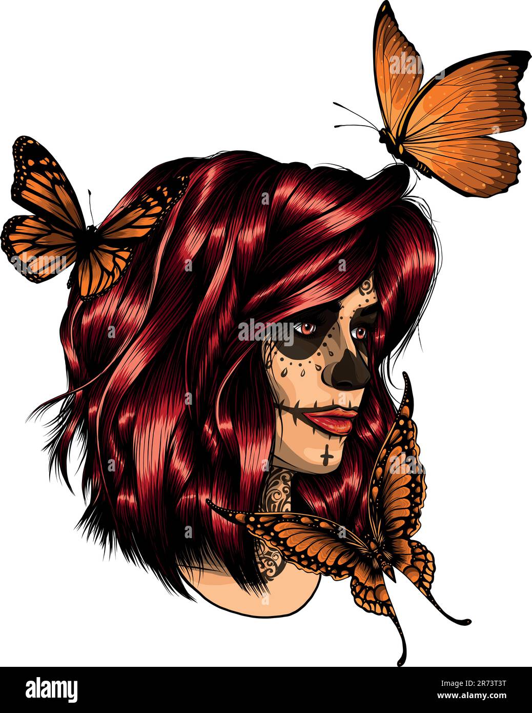 Mexican girl day of the dead face paint Cut Out Stock Images & Pictures