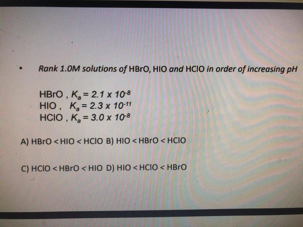Solved Rank 1.0M solutions of HBro, HiO and Hclo in order of | Chegg.com