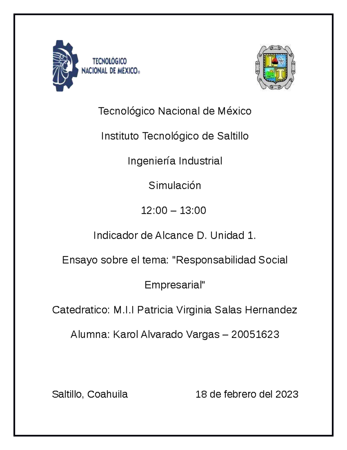 Indicador de Alcance D. Unidad 1. Ensayo RSE. Karol Alvarado