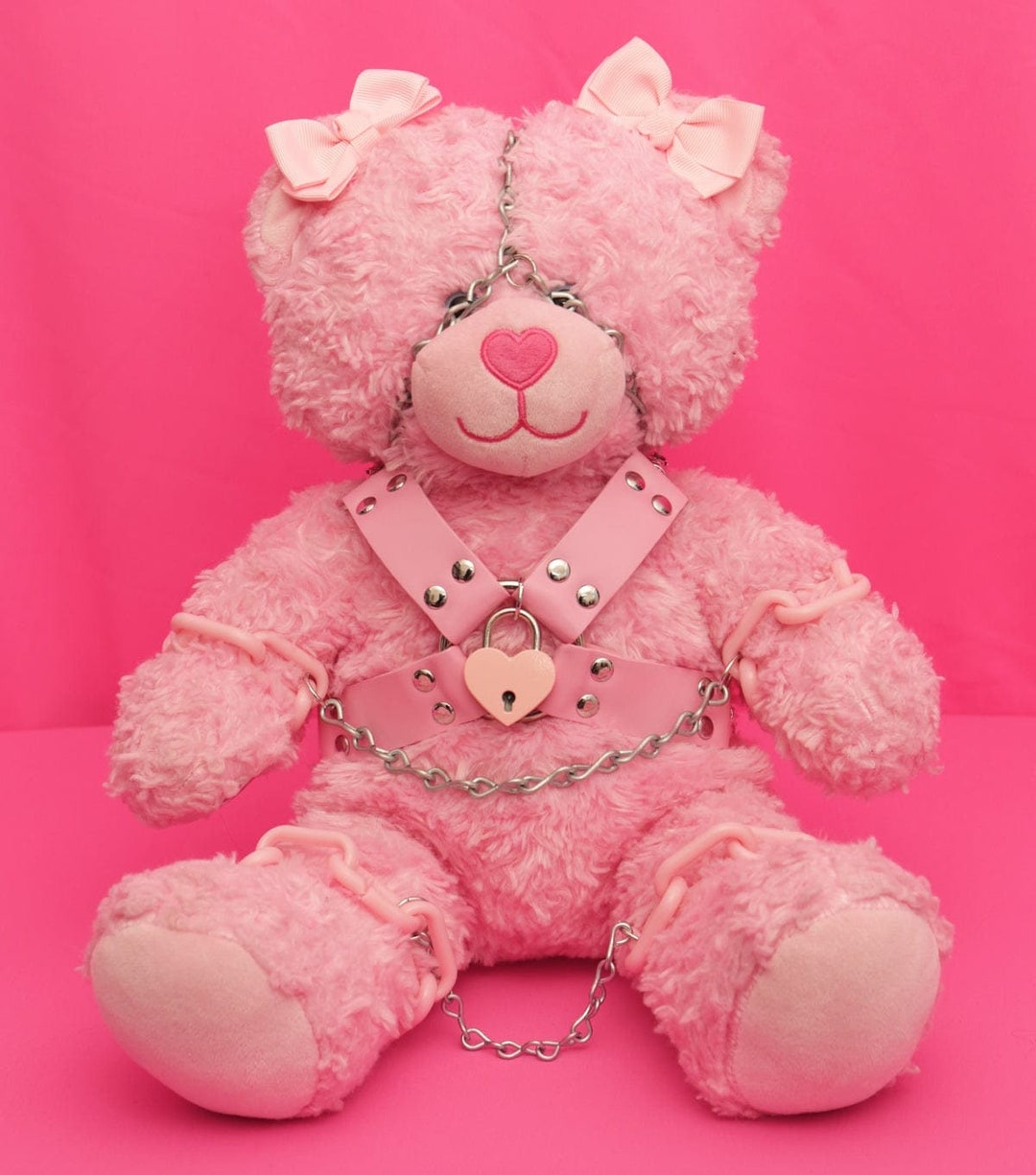 Princess Pink Bondage Bear BDSM Punk Plushie Pastel Goth Kinky Kawaii