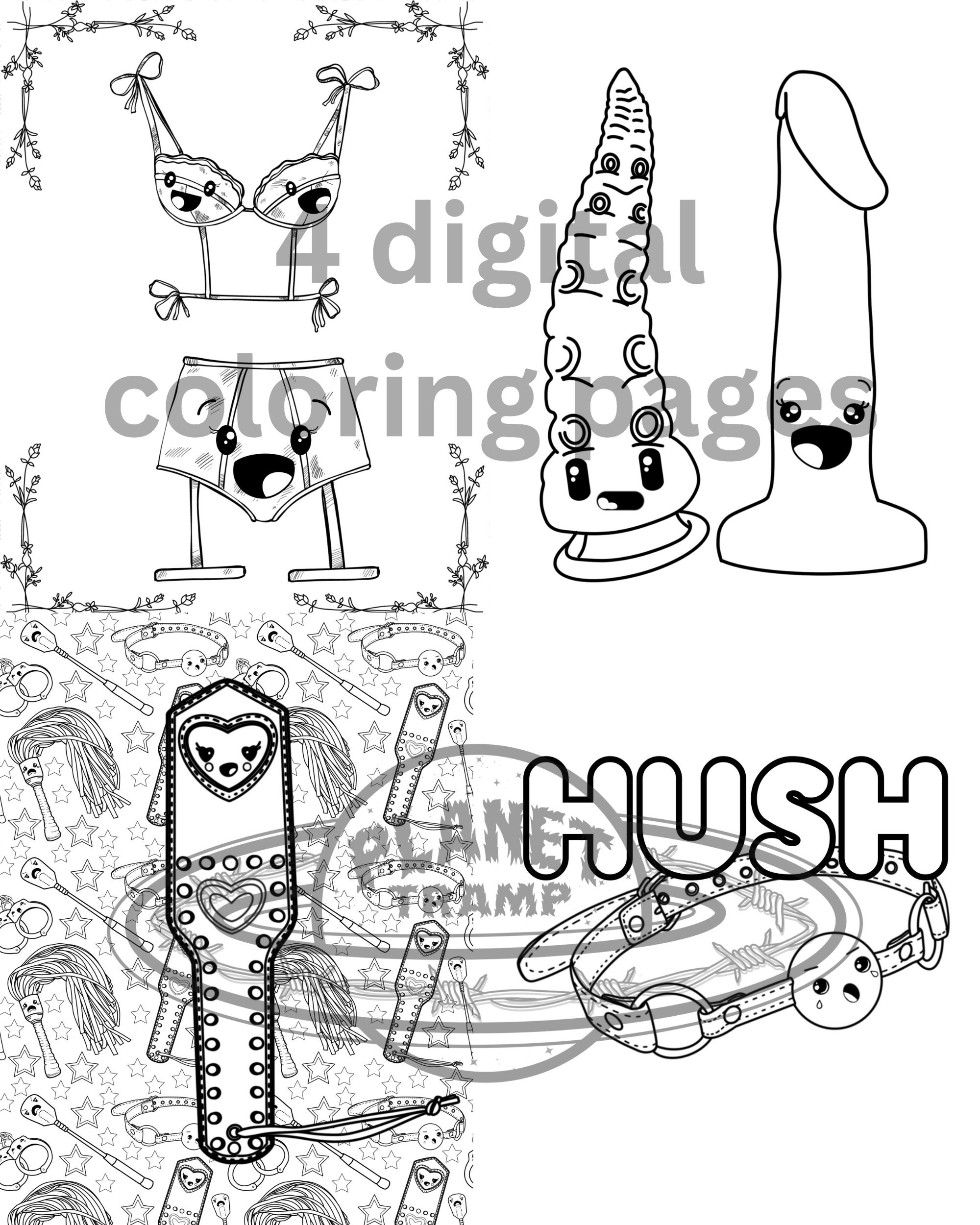 Kinky Kawaii-4 Printable Coloring Pages, Digital Download Coloring Book