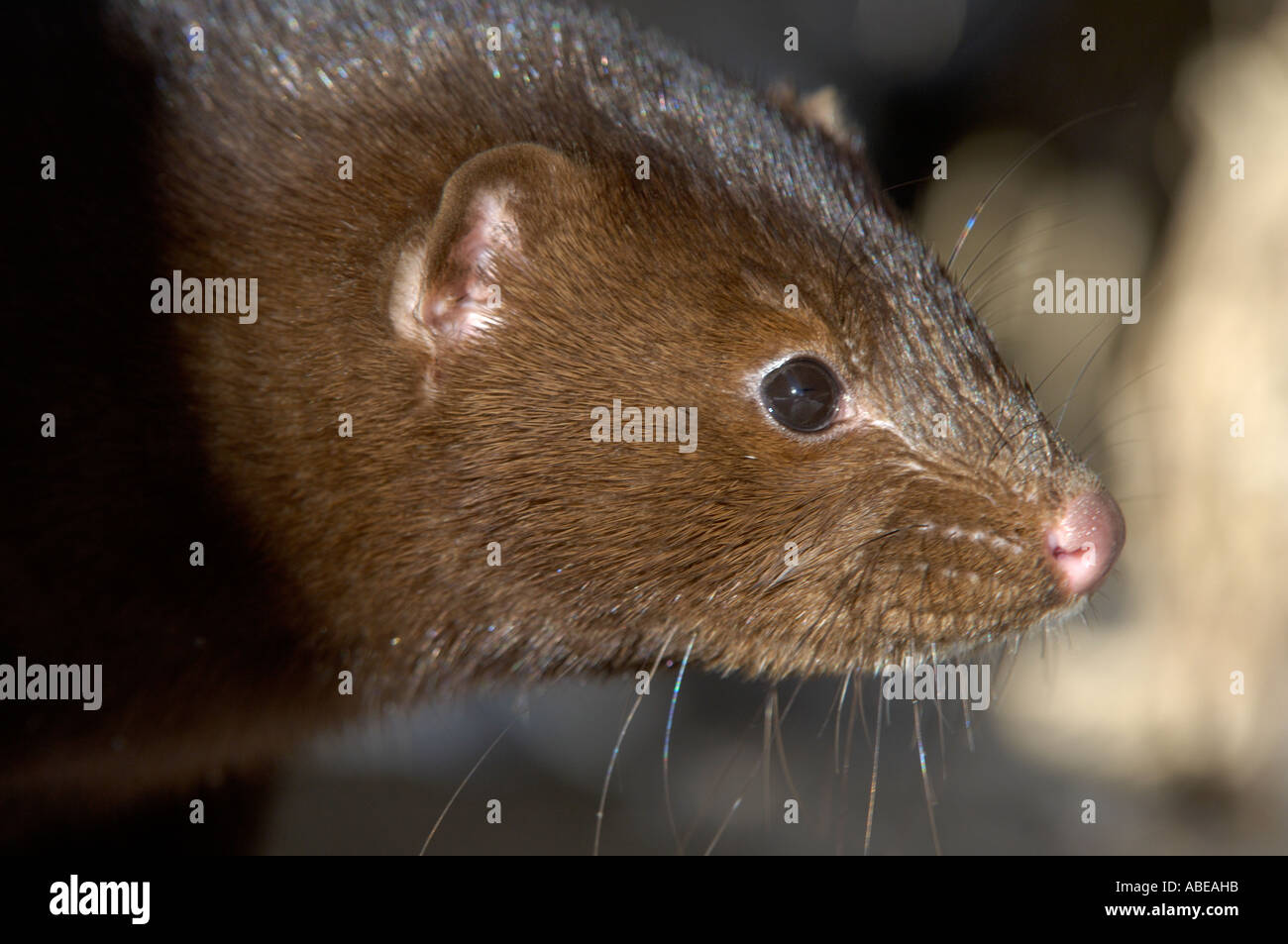 American Mink Mustela vison close up of face Montana USA Stock Photo