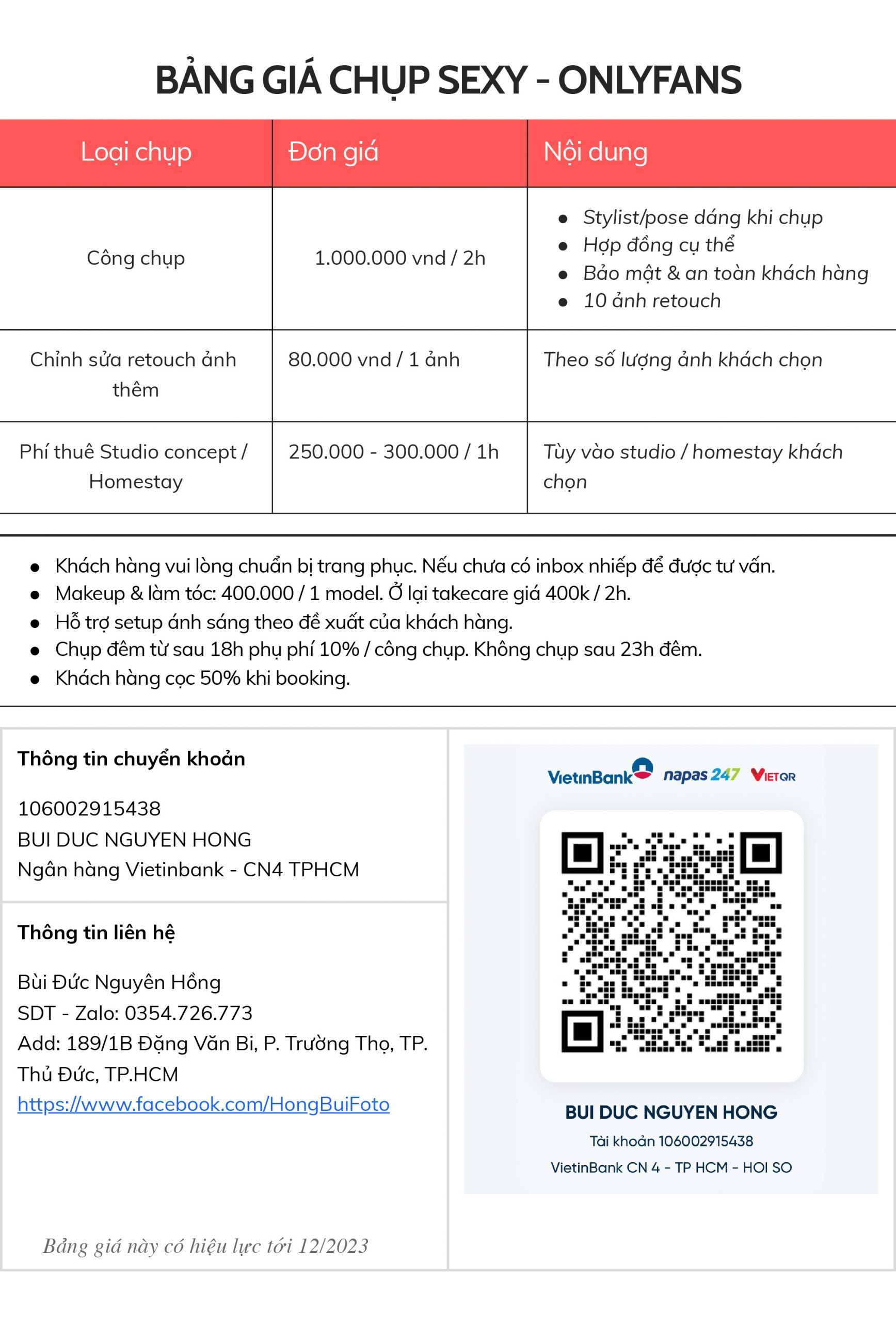 BẢNG GIÁ CHỤP ẢNH SEXY - ONLYFANS tại TP. HCM & TP. Thủ Đức - Review
