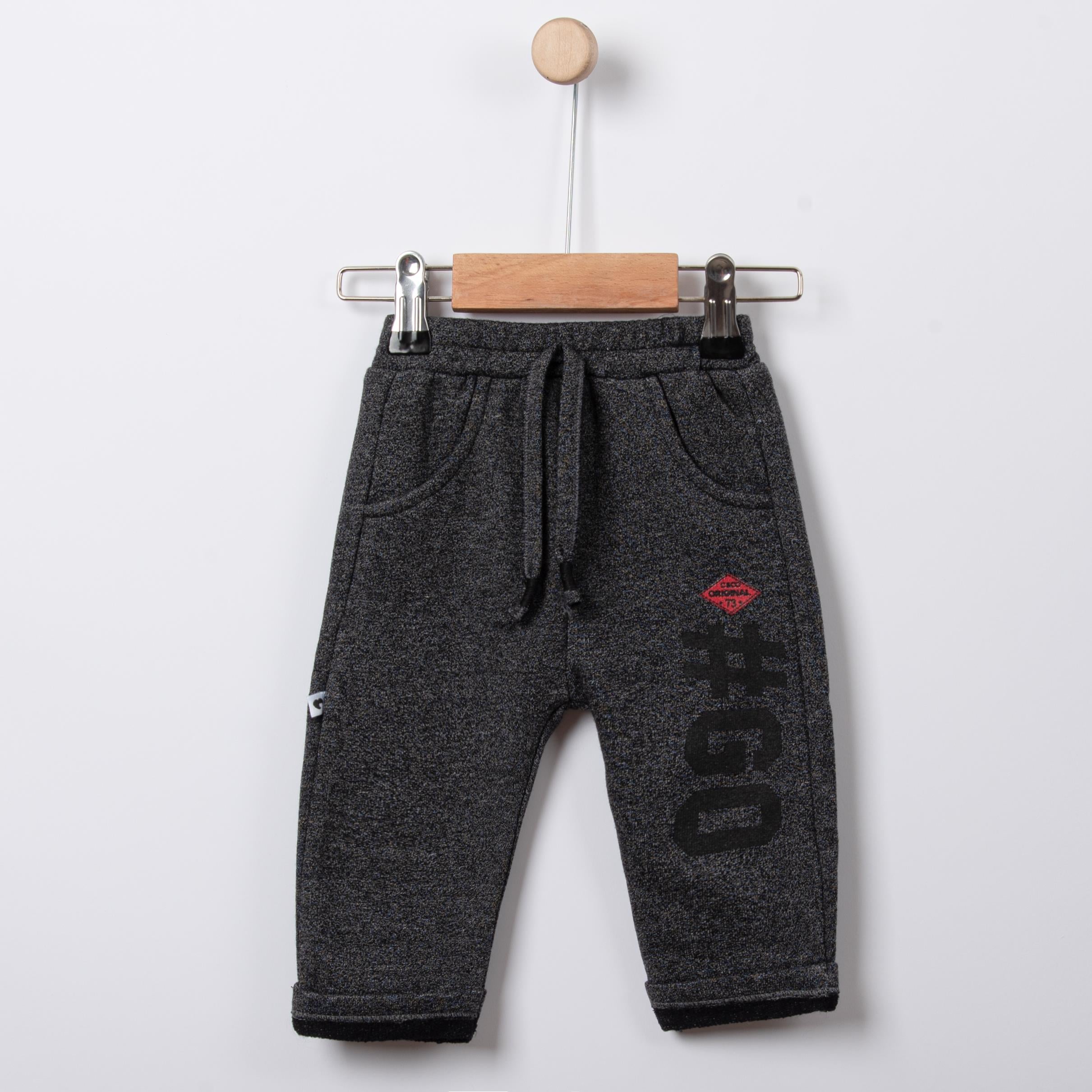 YA KO KİDS 3lü 96 Yazı Baskılı Kanguru Cepli Kapşonlu Erkek Çocuk Alt