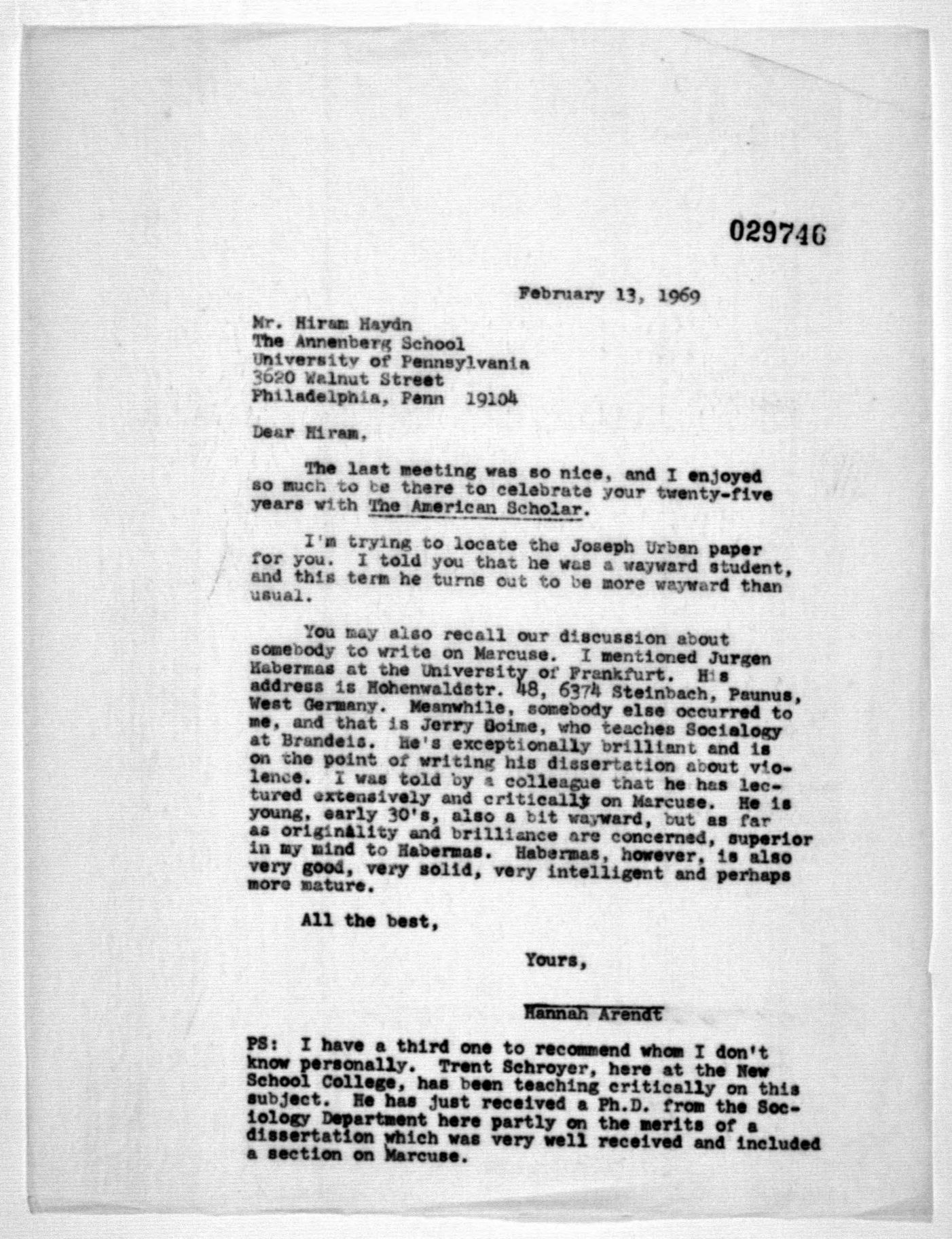Samantha Rose Hill on Twitter: Hannah Arendt on Jürgen Habermas https