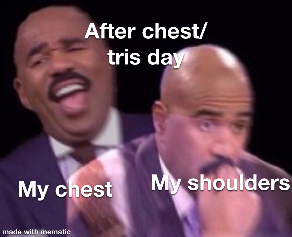 Chest and Tris love the Burn Shoulders hate it : rGymMemes