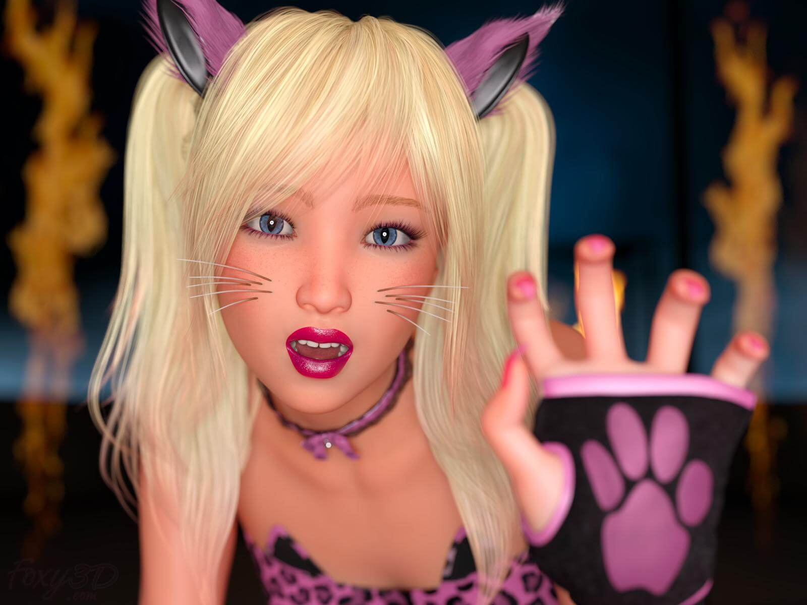 Kelsey Wild Kitty Cosplay 2 3D Render, Digital Art by Foxy 3D